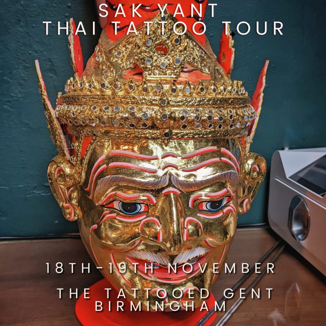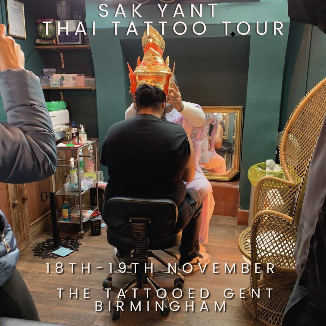 We are excited to be welcoming back Grand Master Arjarn Ohr and his team to The Tattooed Gent, Birmingham. As part of his Sak Yant Thai tattoo tour, Grand master Arjarn and his team will be in the studio on the 18th and 19th November.