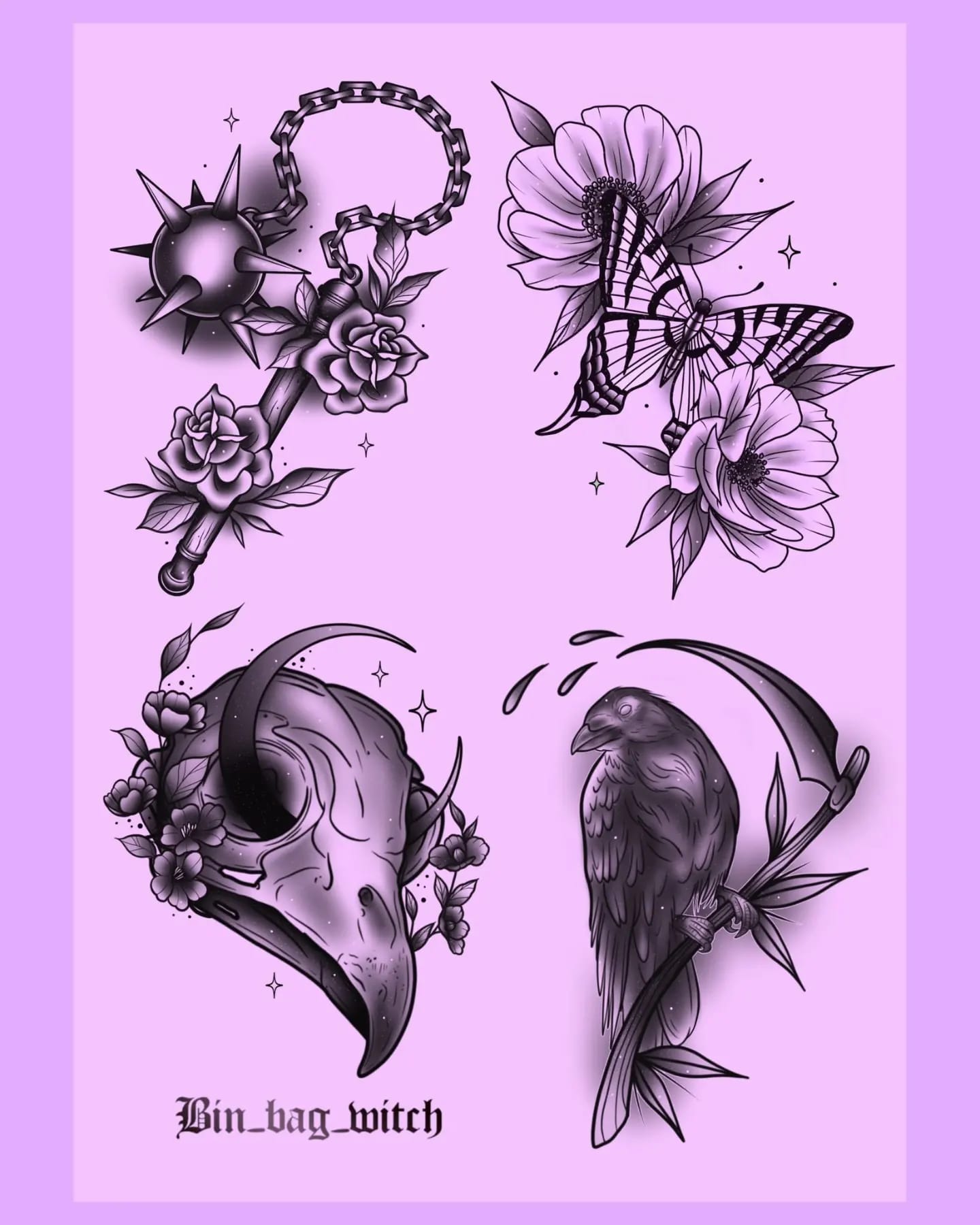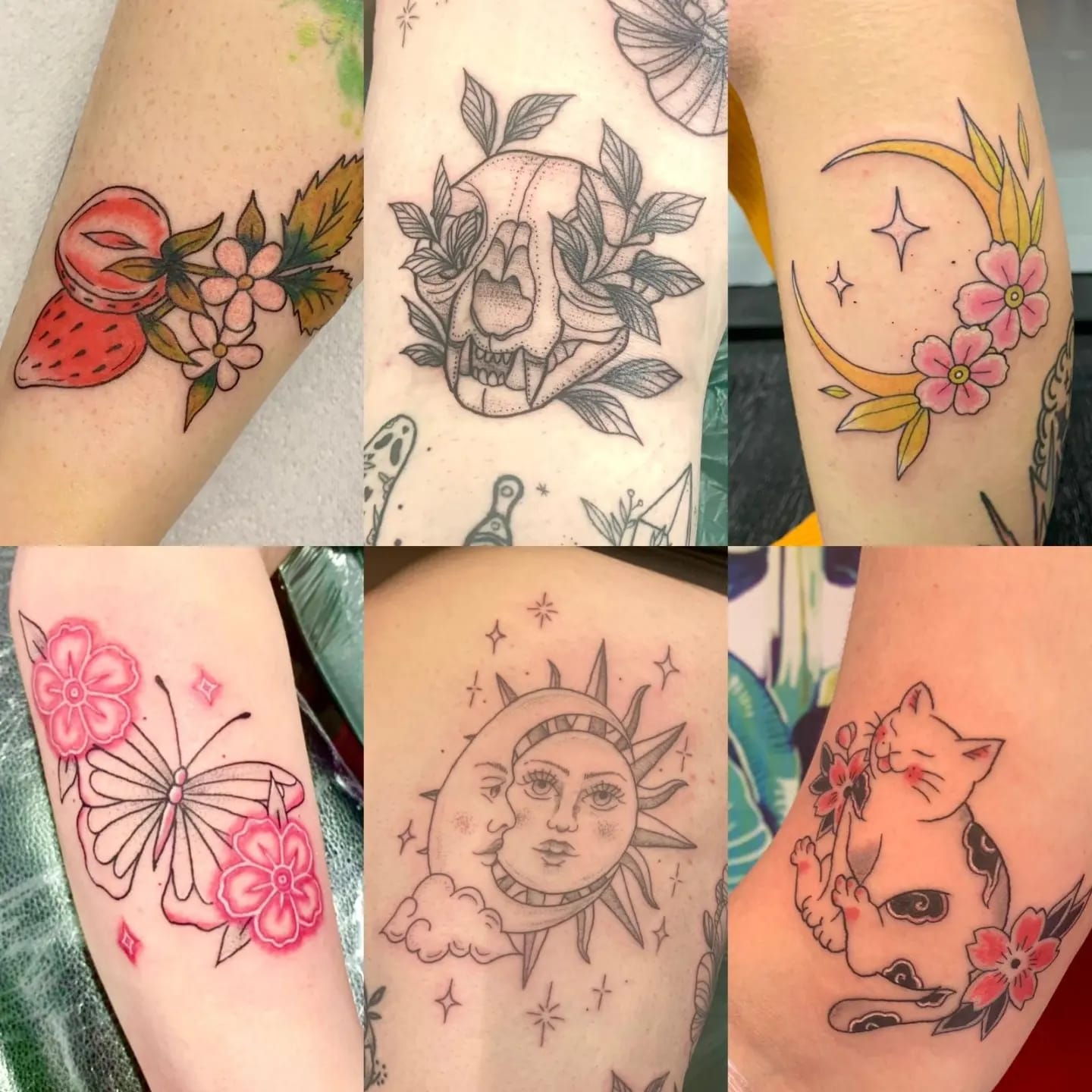 Emily’s main style is ‘Neo Traditional’, with bold lines and colour work. Emily can do many different styles with loads of flash work available, in case you can’t decide what to have.